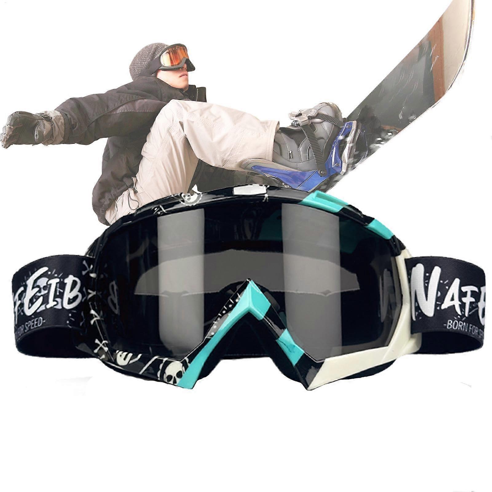 Ski Goggles with UV Protection, AntiFog Panoramic View, Adjustable AntiScratch Black Lens