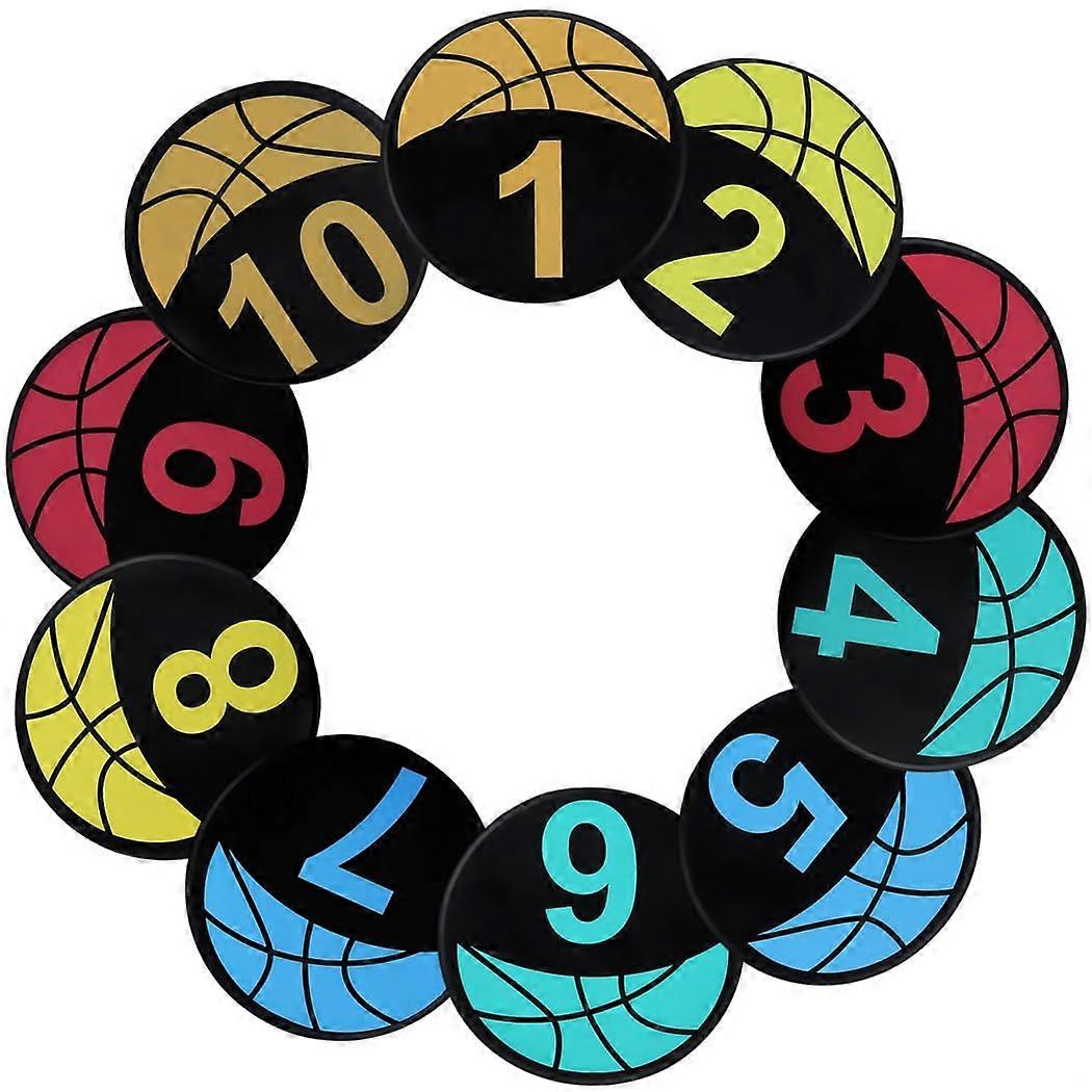 10 Pcs Numbered NonSlip PVC Basketball Training Markers, 9Inch MultiColored Coaching Dots