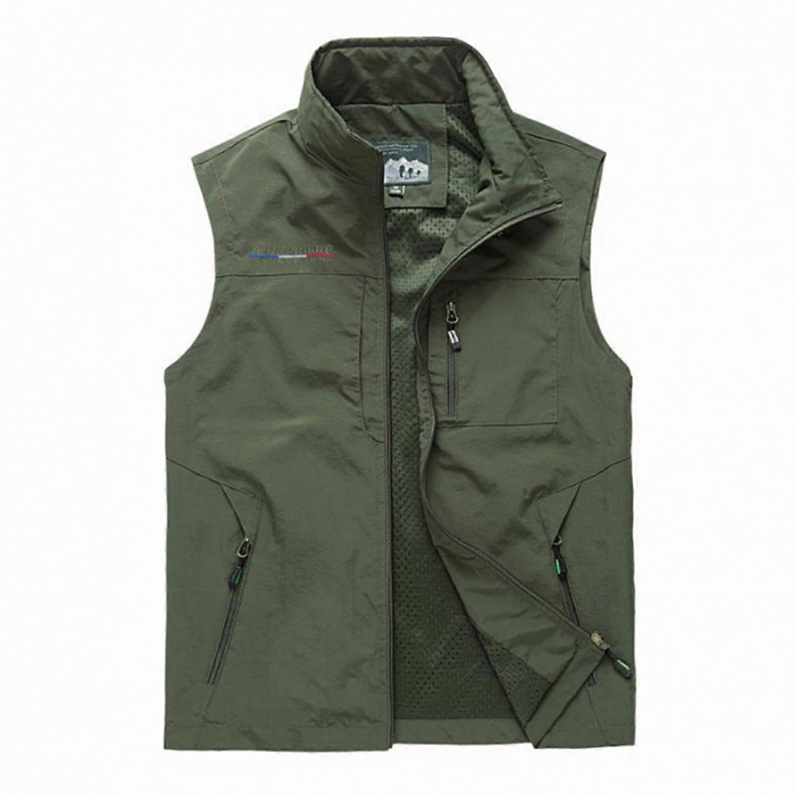 Men's Outdoor Multi Pocket Fishing Vest Lightweight Breathable Quick Drying Sleeveless XXL Green
