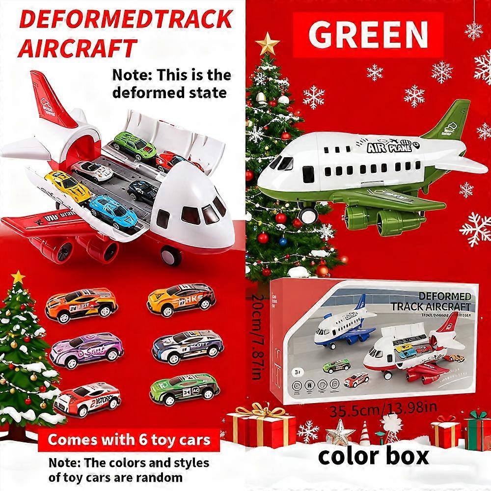 Kids Christmas Inertial Deformable Plane Toy with Matching Toy Car Festive Color Box Gift Packaging for Age 3+