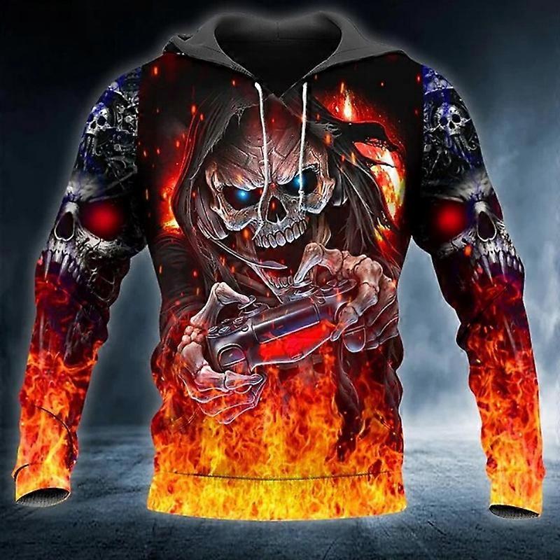 3D Flame Skull Print Men's Hoodies Fashion Cool Hip Hop Street Casual Pullover Autumn Winter Daily Loose Long Sleeve Man Clothes
