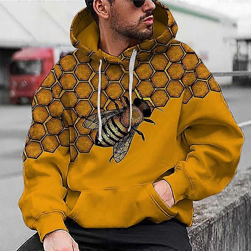 Men's Creative Design Bee Graphic Hoodies Fashion Cool Long Sleeve Hooded Sweatshirt Outdoor Street Loose Casual Clothes For Men