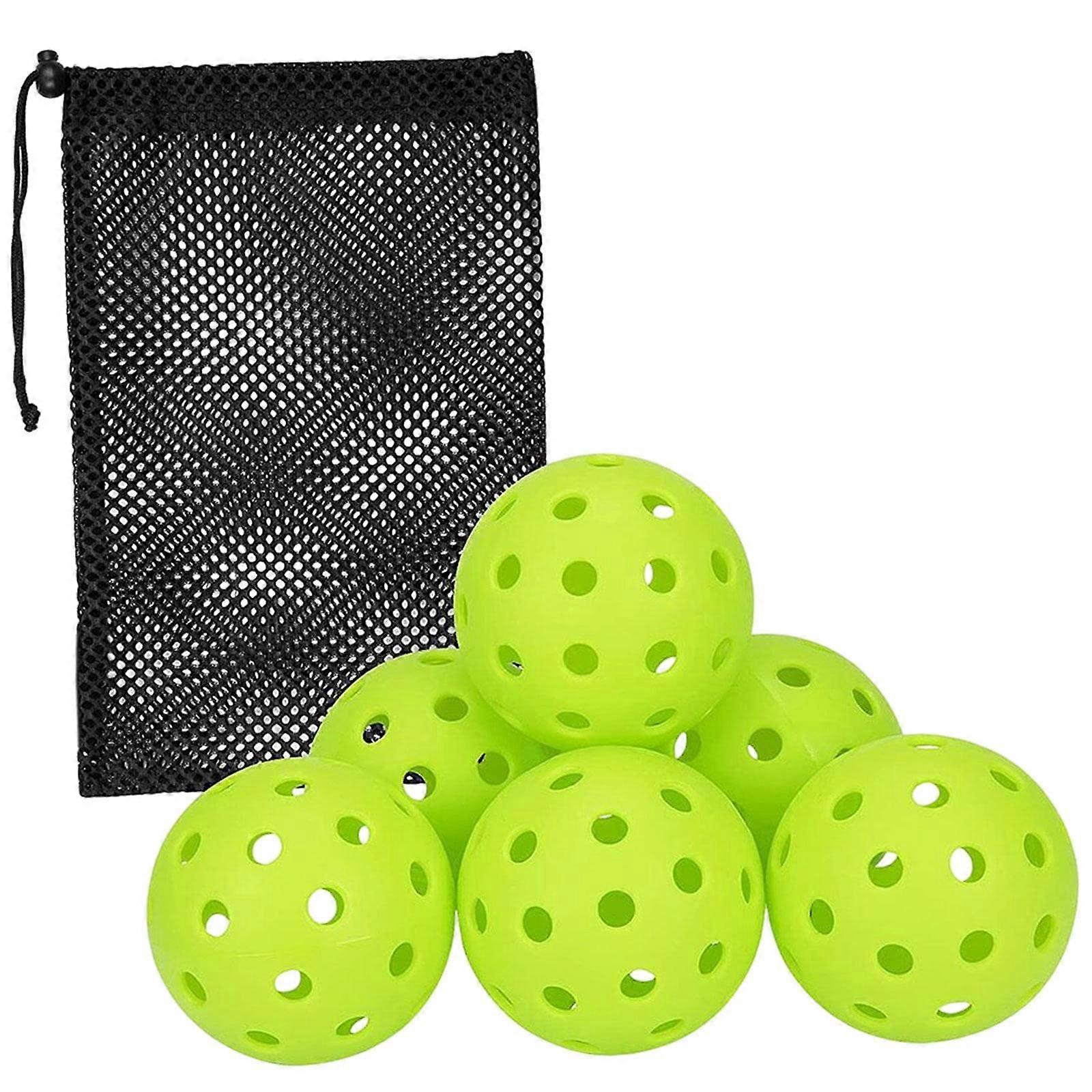 Outdoor Pickleball Balls 6 Pack Green 40 Hole Visibility Seamless Durable Design