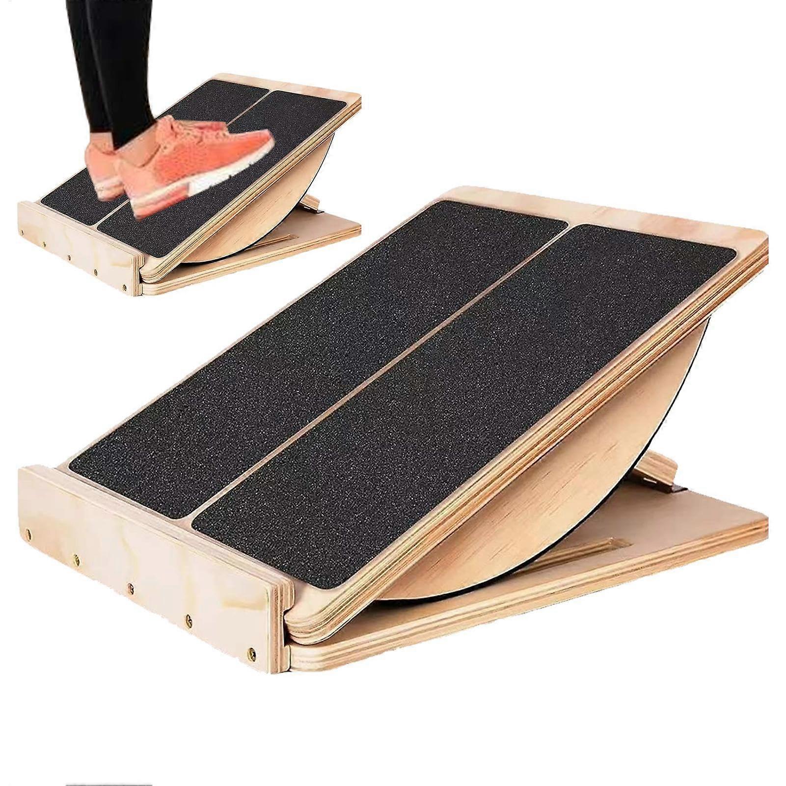 Adjustable Wooden Slant Board with NonSlip Foot Plate for Calf Stretching and Ankle Recovery