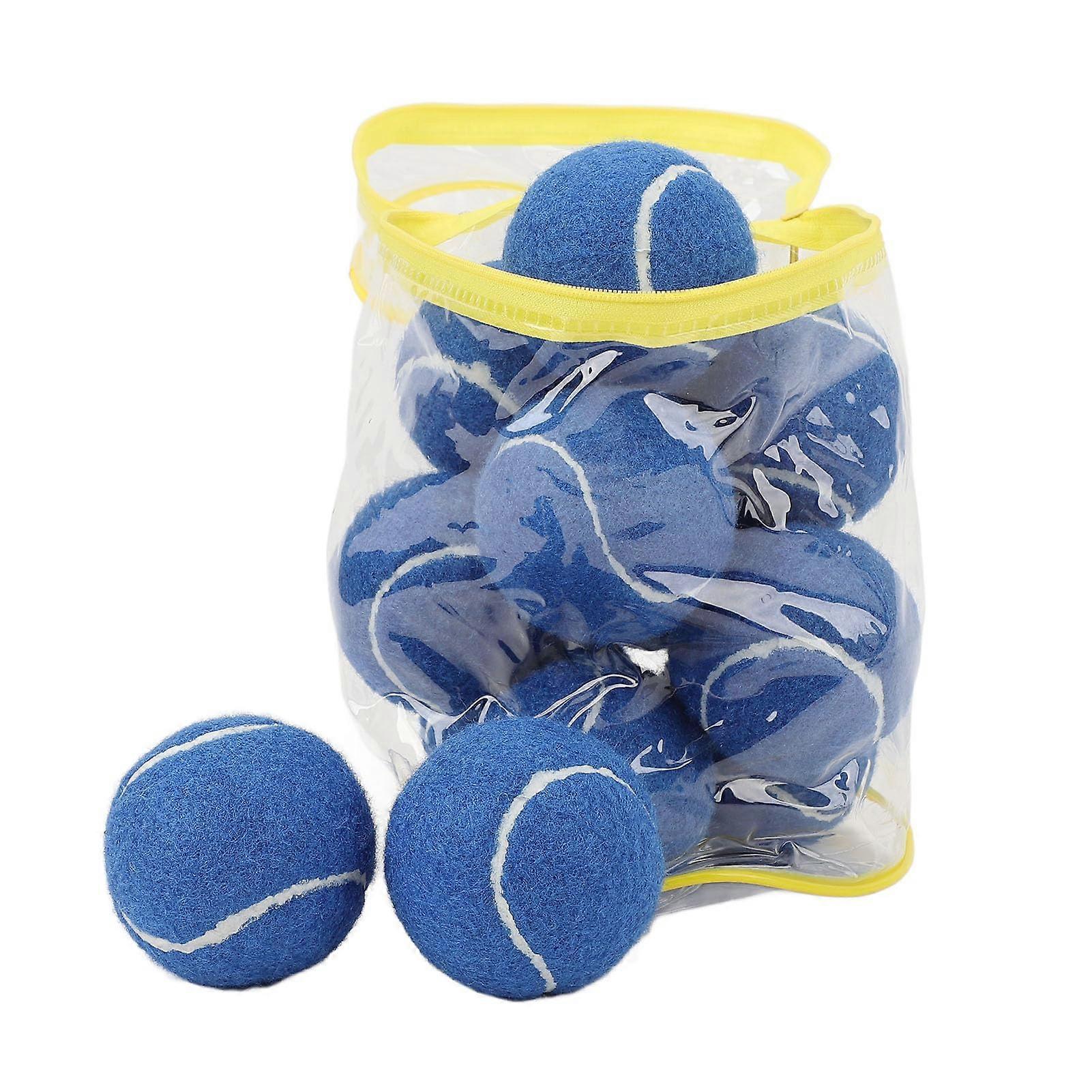 12 Pack Practice Tennis Balls for Beginners with Durable Felt Cover and Zipper Storage Bag Blue