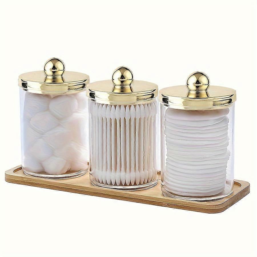 Desk Organizers,Cosmetic storage set comprising three storage boxes and one bamboo tray, suitable for use in the bathroom