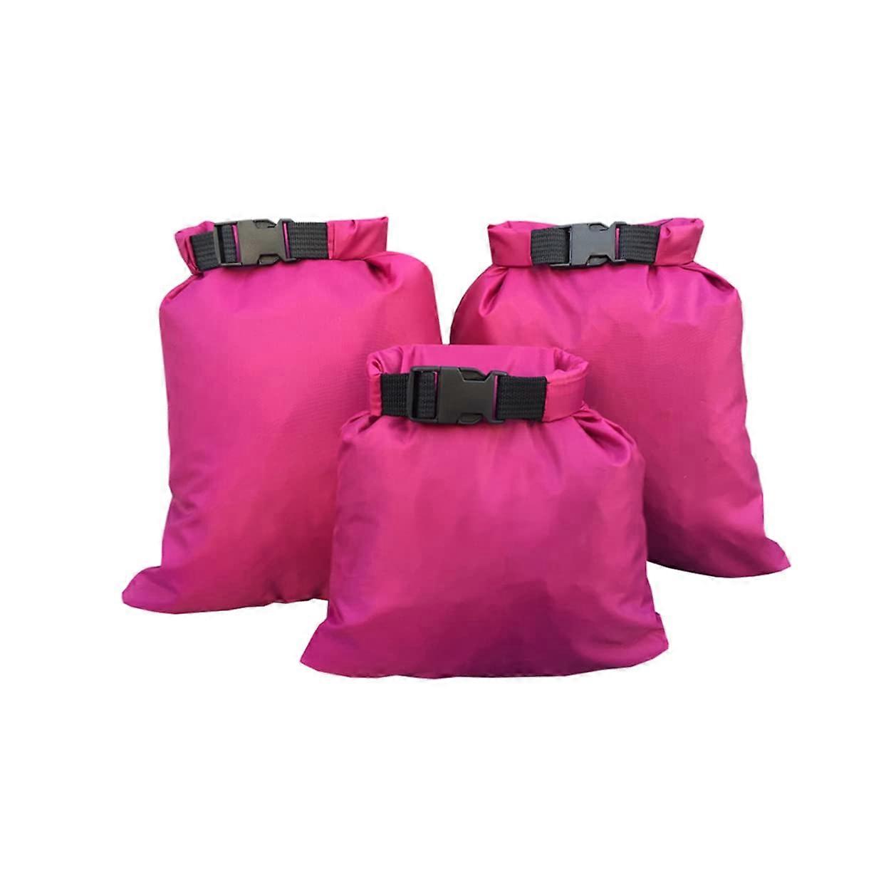 3pcs Waterproof Dry Bag Set with Sealed Closure for Kayaking Camping Boating Fishing Rose Red