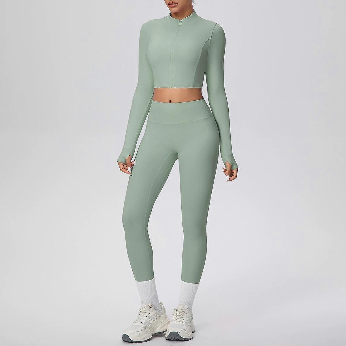 2Pcs Long Sleeve Gym Set Women Training Stretch Long-sleeved Coat Workout Leggings Sports Suit Sports Outdoor Recreation Women