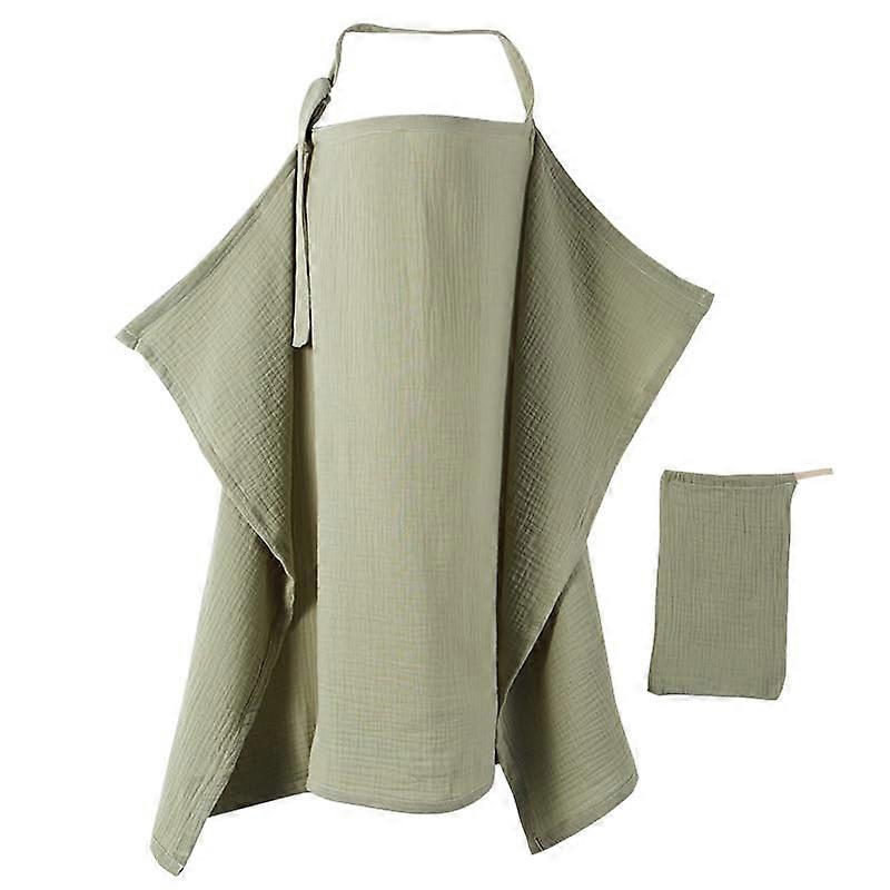 Muslin Nursing Cover with Adjustable Straps, Breathable Cotton Breastfeeding Cover for Mom and Baby, Green