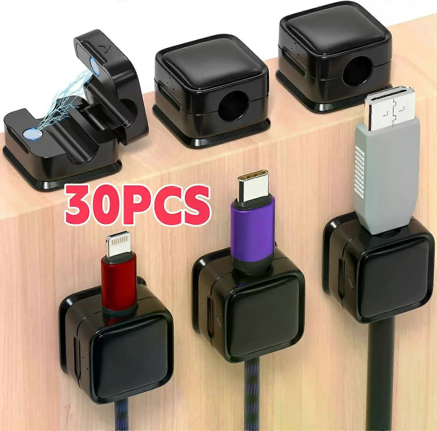 30/6PCS Magnetic Cable Clips Cable Smooth Adjustable Cord Holder Under Desk Cable Management Wire Keeper Cable Organizer Holder