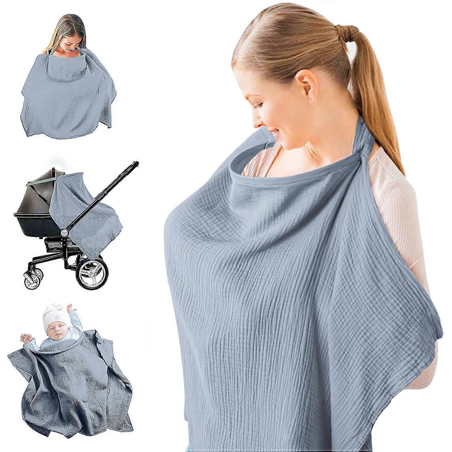 Breathable Cotton Nursing Cover with Adjustable Strap for Baby Feeding Light Blue