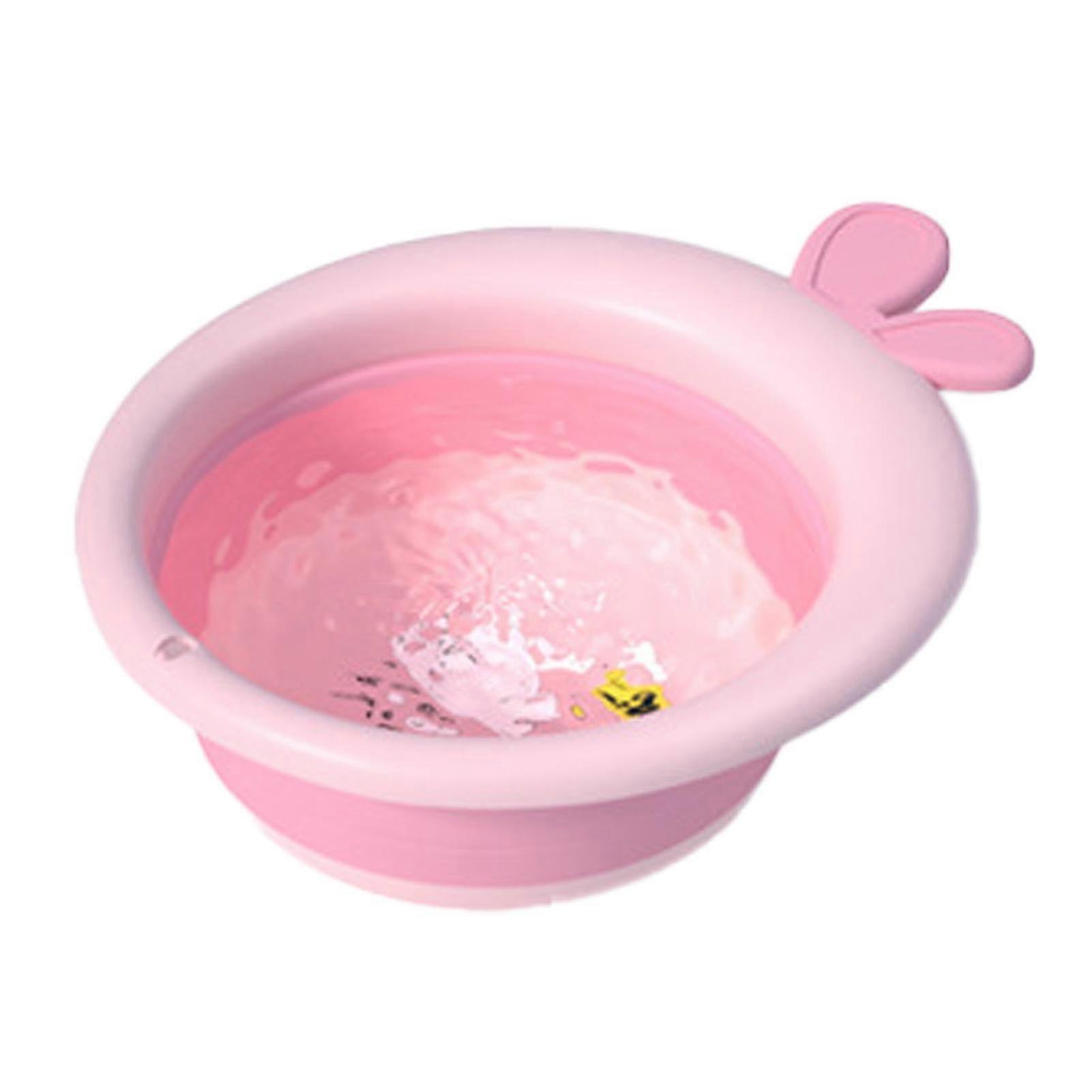 Foldable Baby Bath Basin with Cute Cartoon Design for Newborns Pink Collapsible Wash Tub