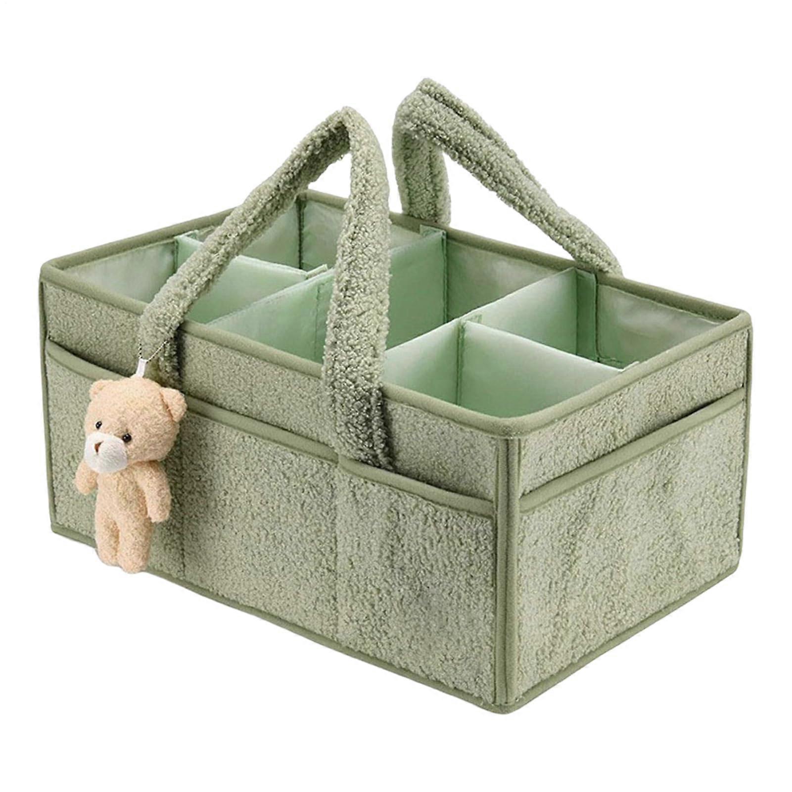 Baby Diaper Caddy with Removable Dividers Felt Nursery Organizer Bear Design Green Storage Basket