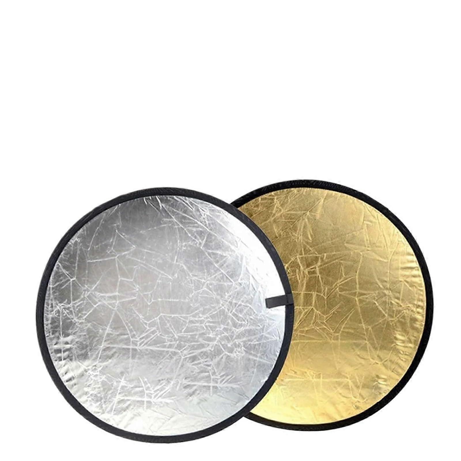 60cm 2 in 1 Silvery Golden Photography Reflector Disc, Collapsible DualSided Light Reflector for Studio and Outdoor Use