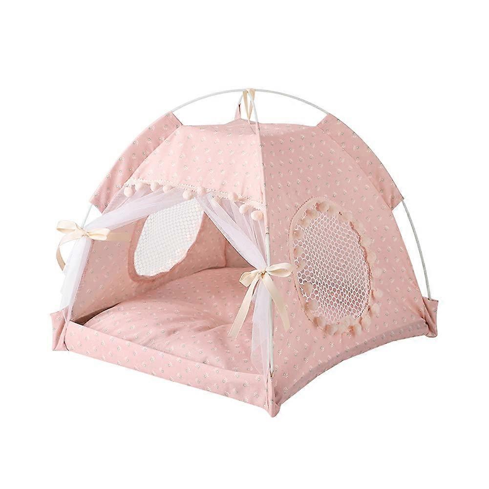 Cat Tent Pink Waterproof Cotton Canvas Pet Teepee for Indoor Outdoor Use, Easy Tool Assembly