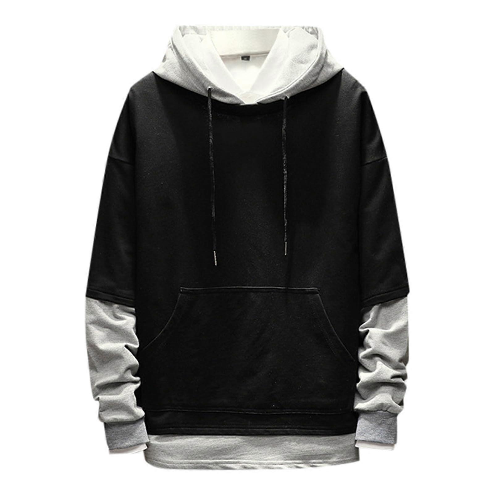 Men's Hoodie with Warm Fleece Lining, Loose Casual Fit, Retro Design, Black XL for Autumn Winter