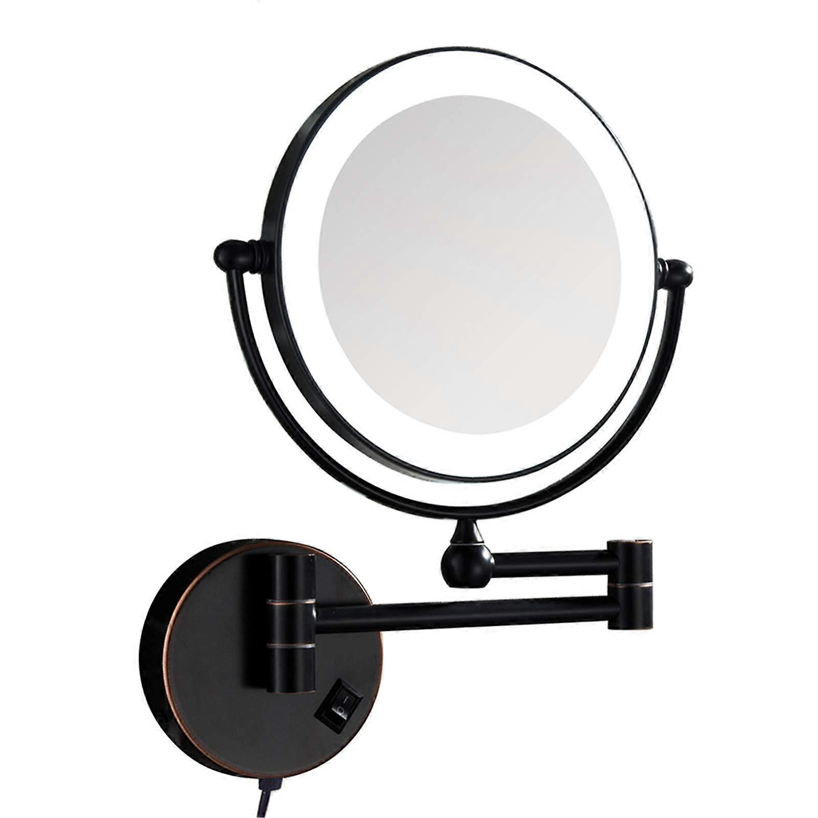 Wall Mounted Makeup Mirror 8 Inch Black 3X Magnifying Double Sided LED Vanity Mirror with 360° Swivel