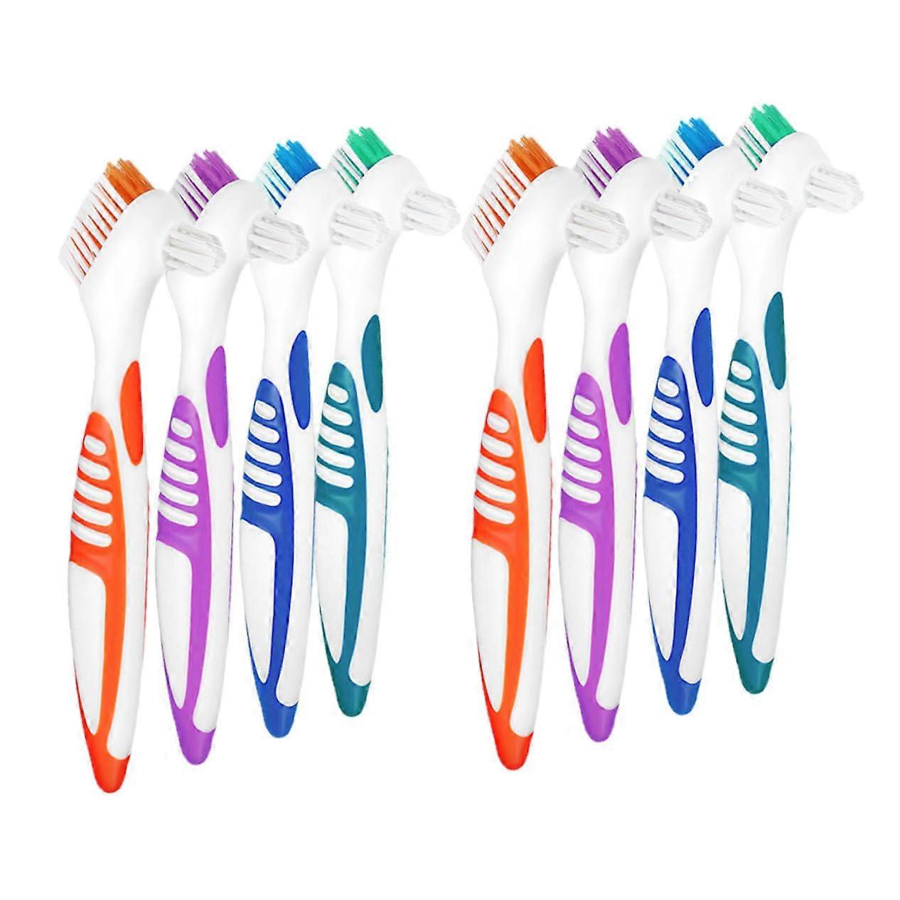 8pcs Double Sided Denture Brushes for Deep Cleaning DualSided Denture Care Travel Toothbrush Set Blue Green Purple Orange
