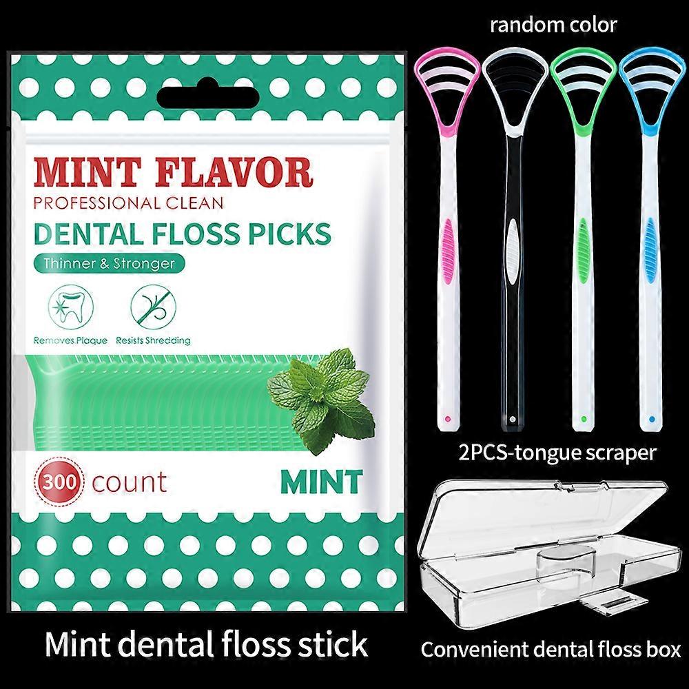 Daily & Travel Oral Care Kit: 300 Mint Floss Picks + 2 Tongue Scrapers + Portable Case