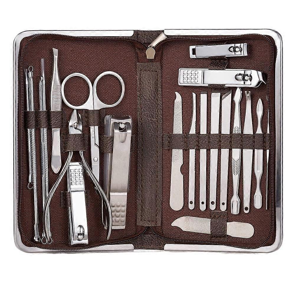 Manicure Pedicure Set 21pcs Stainless Steel Nail Grooming Kit with Leather Travel Case Brown