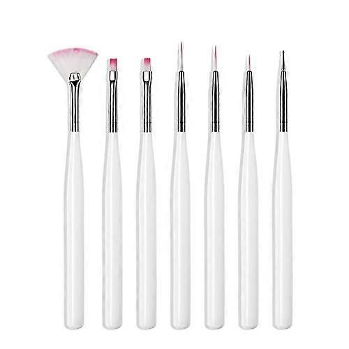 Nail Art Brushes Acrylic Handle Set of 7 White Professional Manicure Tools for Salon and Home Use