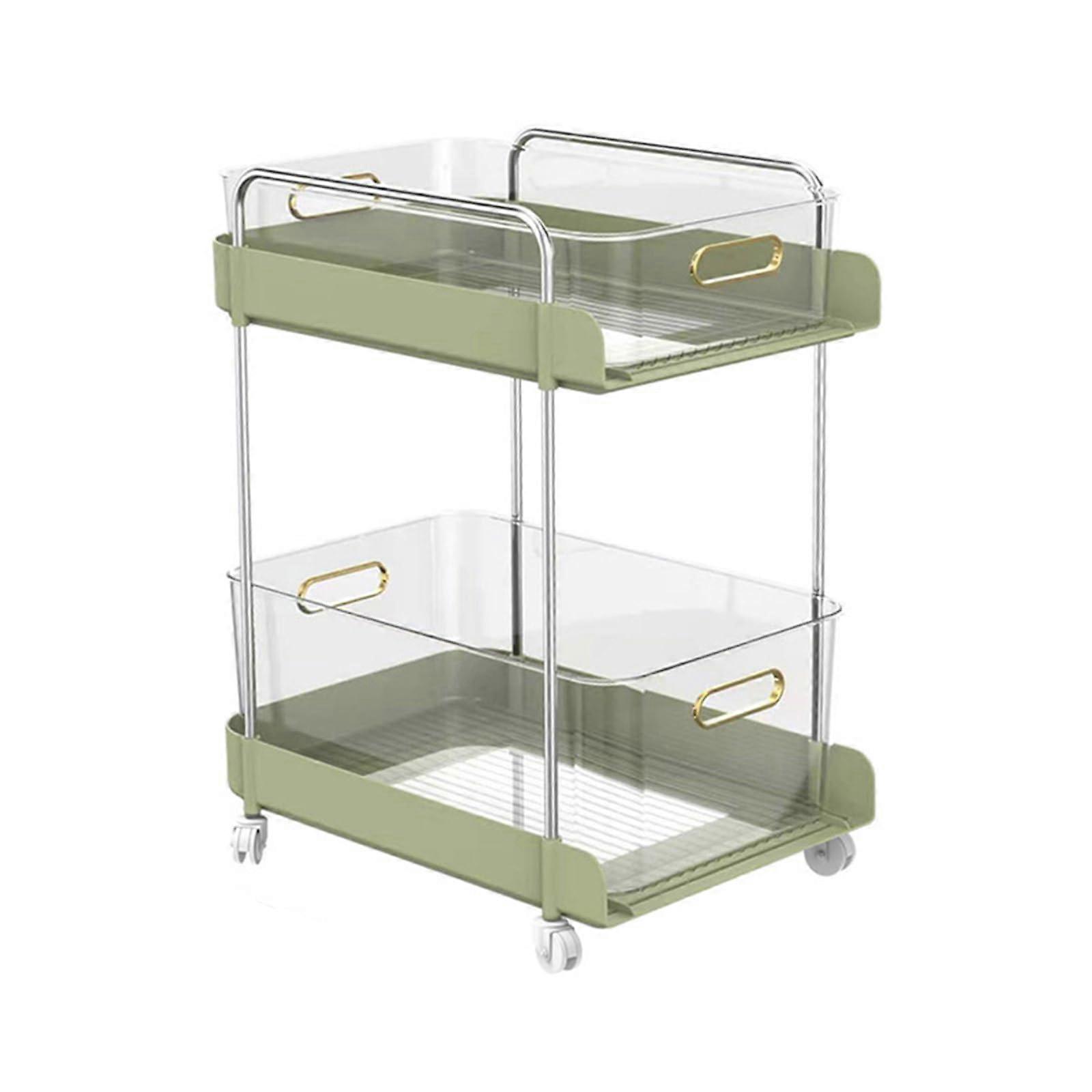 2 Tier Rolling Utility Cart with Drawers, White and Green MultiPurpose Mobile Storage Rack for Kitchen and Classroom