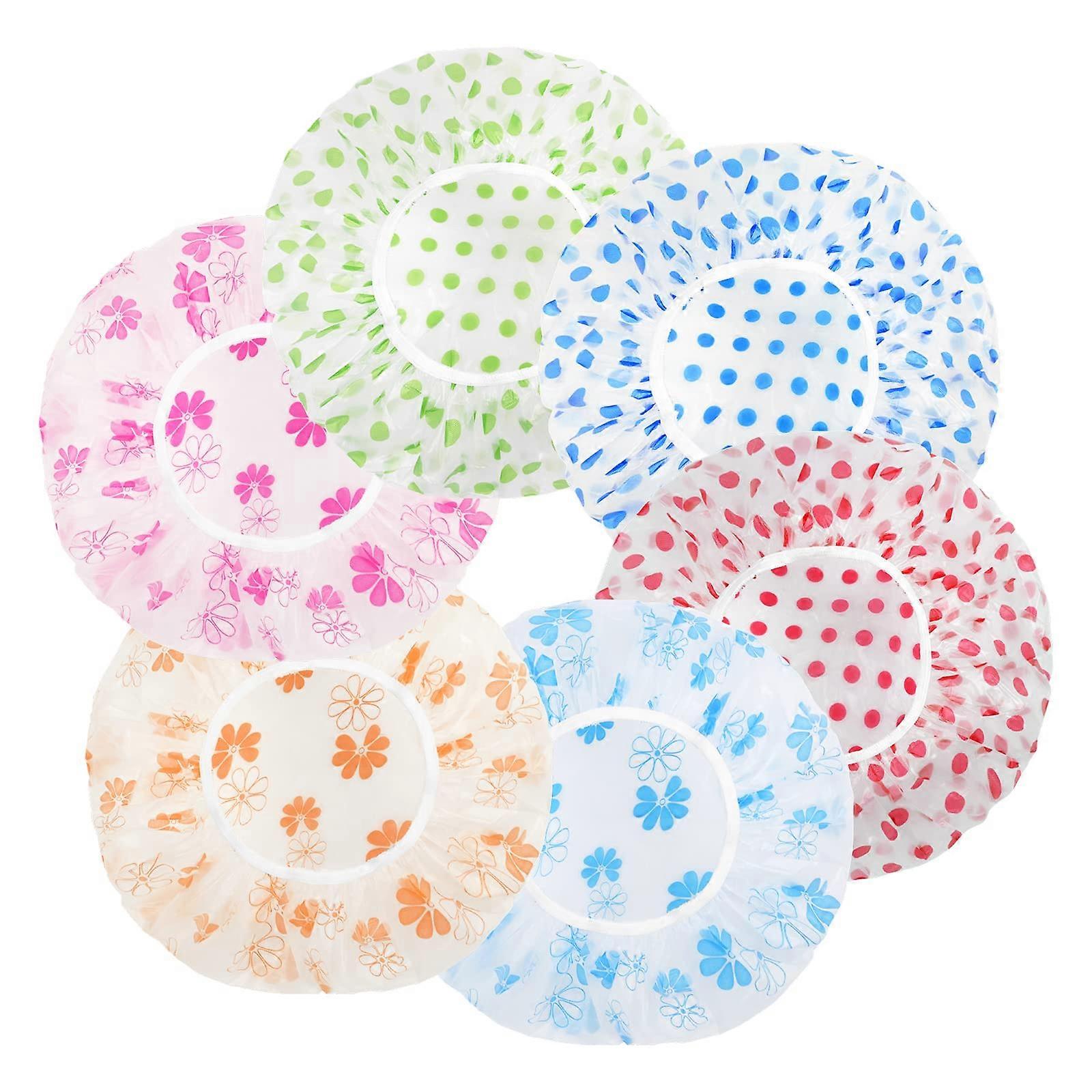 6Pcs Shower Caps for Women Large Waterproof Reusable Long Hair Bath Cap with Elastic Band for Spa Salon Home