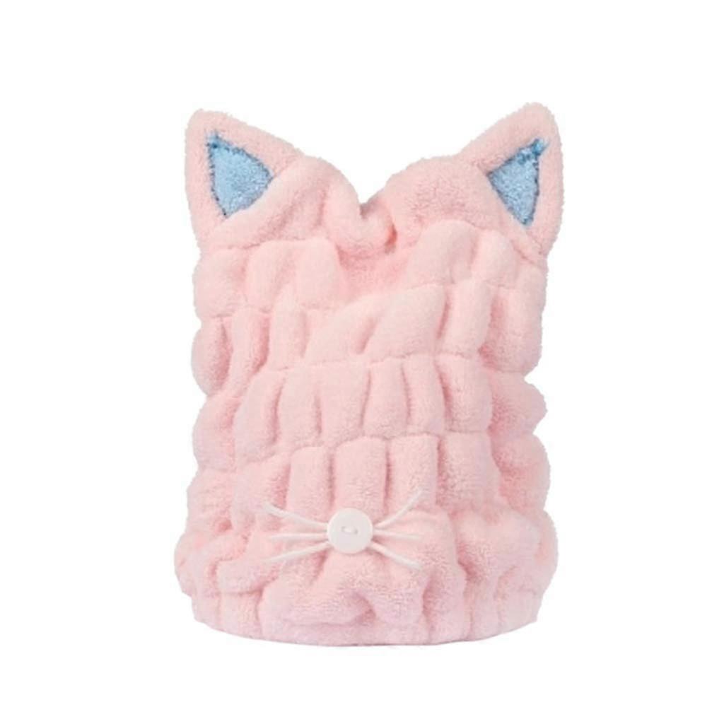 Microfiber Hair Towel Wrap with Kitty Ears, Quick Dry Absorbent Hair Drying Turban for Women