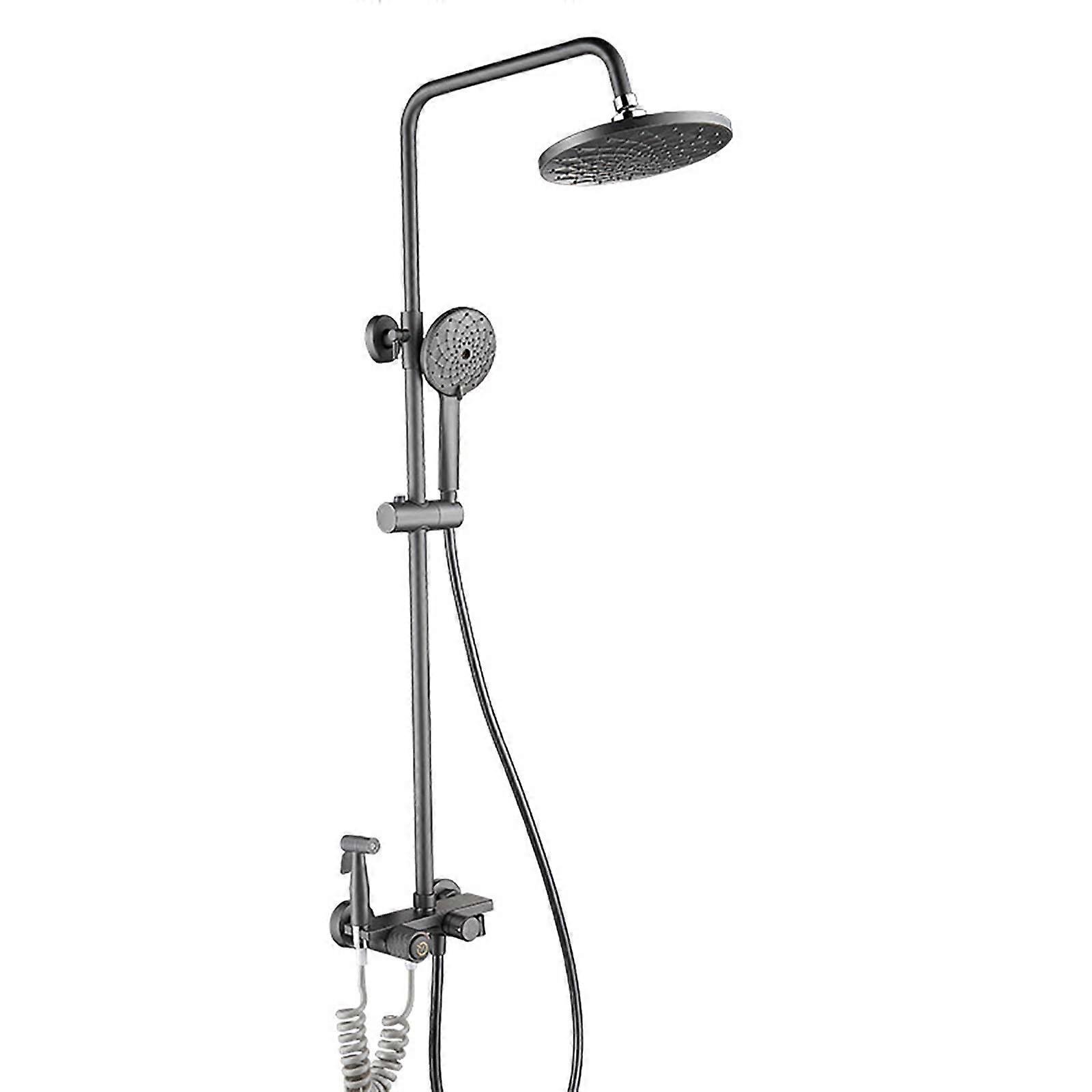 Gray Wall Mounted Shower Faucet Set with 8 Inch Rain Shower Head, Tub Spout, Handheld and Bidet