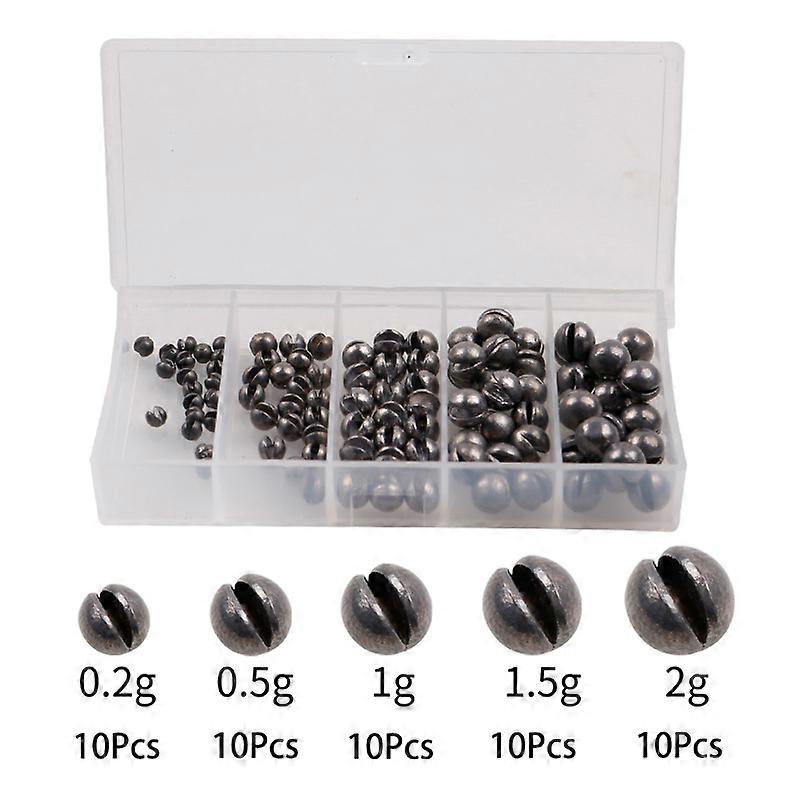 100/50Pcs Fishing Sinkers Kit-5 Size Adjustable Round Weights with Removable Split Design for Freshwater/Saltwater Angling Tool