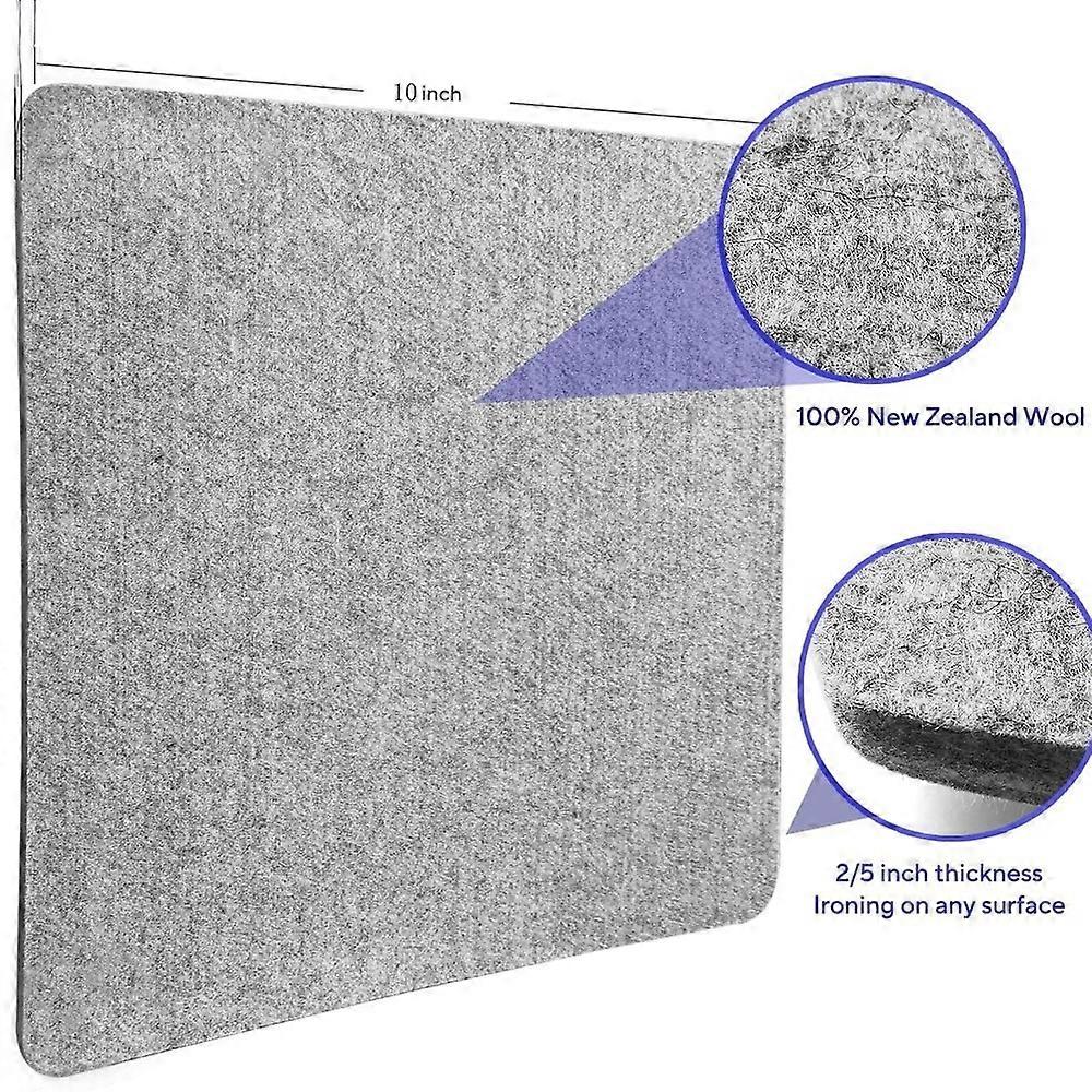 [DETAIL]<br>Why choose us? - With a premium quilting pressing mat made of 100% wool, with dense interlocking fibers preventing stretching & making your quilting ironing an easy, fast, most efficient task. - The Wool Pressing Pad is so quick and easy to use, you'll notice a difference in the quality and accuracy of your quilt blocks, embroidery pieces and appliques at once.  - Customers love the portability and flexibility that our mats provide! Our mats are easy to take anywhere–to classes, guilds, or just around your home!<br>We offer two options<br>1:Kit Includes:<br>A 10 by 10 inch felt mat(100% New Zealand Wool Wool Ironing Mat)<br>A felt bag and 30 hand sewing needles<br>A silicone ironing mat for storing your iron<br>2: Purchase an ironing mat felt separately<br>Wool ironing mat absorbs heat, steam, and it will pass through your textile. You don't need to turn the fabric around and iron on both sides without the need of steam.<br>Care Tips:<br>Do not leave your iron on the wool mat for a long time.<br>Use of steam: With prolonged use of steam during ironing, a small amount of moisture can pass through the mat, since wool is a porous material.<br>Cleaning: Simply rinse it in sink or bath and hang to dry. Note, do not wash with machine.<br>Drying: When wet, simply hang to dry. Avoid twisting or bending.<br>Storage: Avoid folding or rolling. Find a flat surface and place it there. Also avoid storing the mat when it is damp or wet.<br><br>[ATTRIBUTES]<br>- High-concerned chemical: None<br>- Use: Neatening/Storage<br>- Stand Material: pure cotton<br>- High-concerned chemical: None<br>- Use: Neatening/Storage<br>- Stand Material: pure cotton<br>- Accessories: Mesh Protective Cover<br>- Board Material: pure wool<br>- Style: Portable<br>- Origin: Mainland China<br>- Material: 100% pure New Zealand wool,no added chemicals<br>- Set: 3 in 1 set<br>- Specification: 14x17 inches,35.5x43 cm<br>- Features: Great for Sewing,easy to store,Ironing Boards,Wool Felt Board,ironing clothes,Organize your suit,prevent fiber stretch