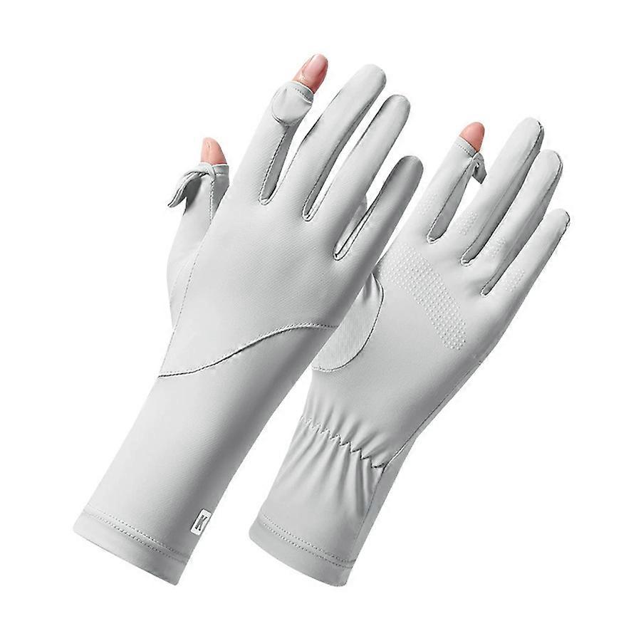 Sunscreen gloves for women in summer, new ice silk breathable and non slip wrist extension, exposed finger flip cover, UV resist
