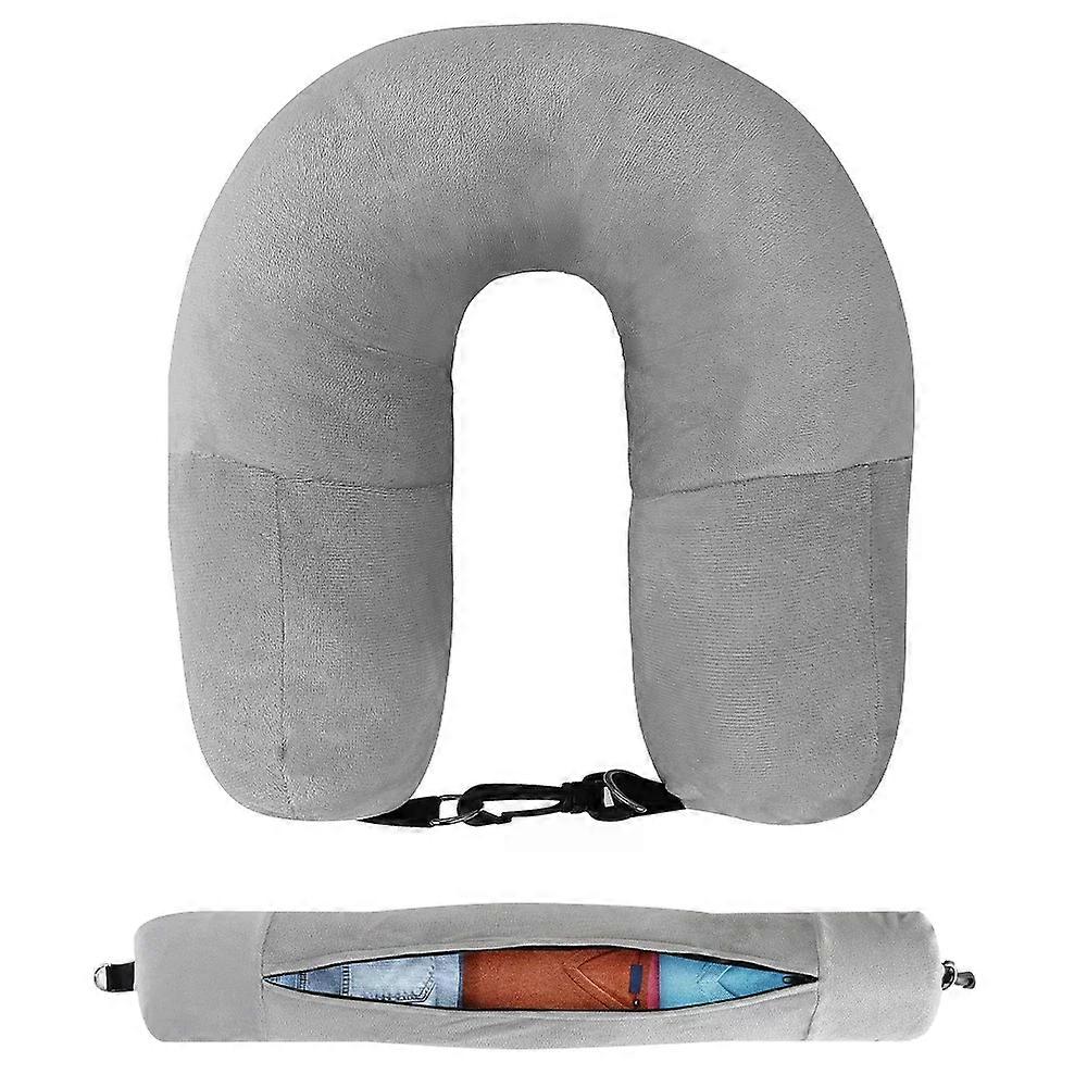 Fillable U-Shaped Travel Neck Pillow with Velvet Cover & Storage Bag - Comfortable for Airplane, Car, Office, Portable Design