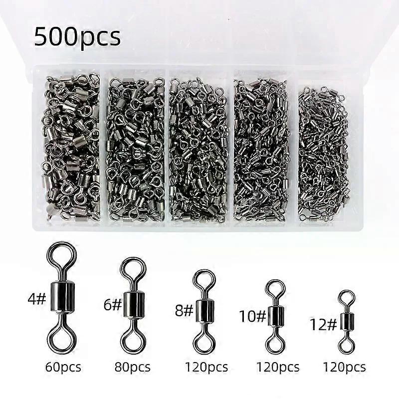 200-500Pcs Fishing Swivels Kit Ball Bearing Rolling Swivel Fishing Tackle Saltwater Freshwater Fishing Line Connectors for Carp