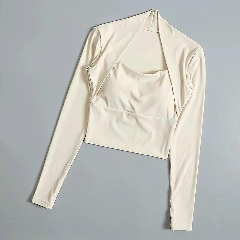Fitness Chest Cushion Sports Top Women Long Sleeve Shirts Pra Speed Up Short Elegant Dance Yoga Clothes Small Waistband Gym