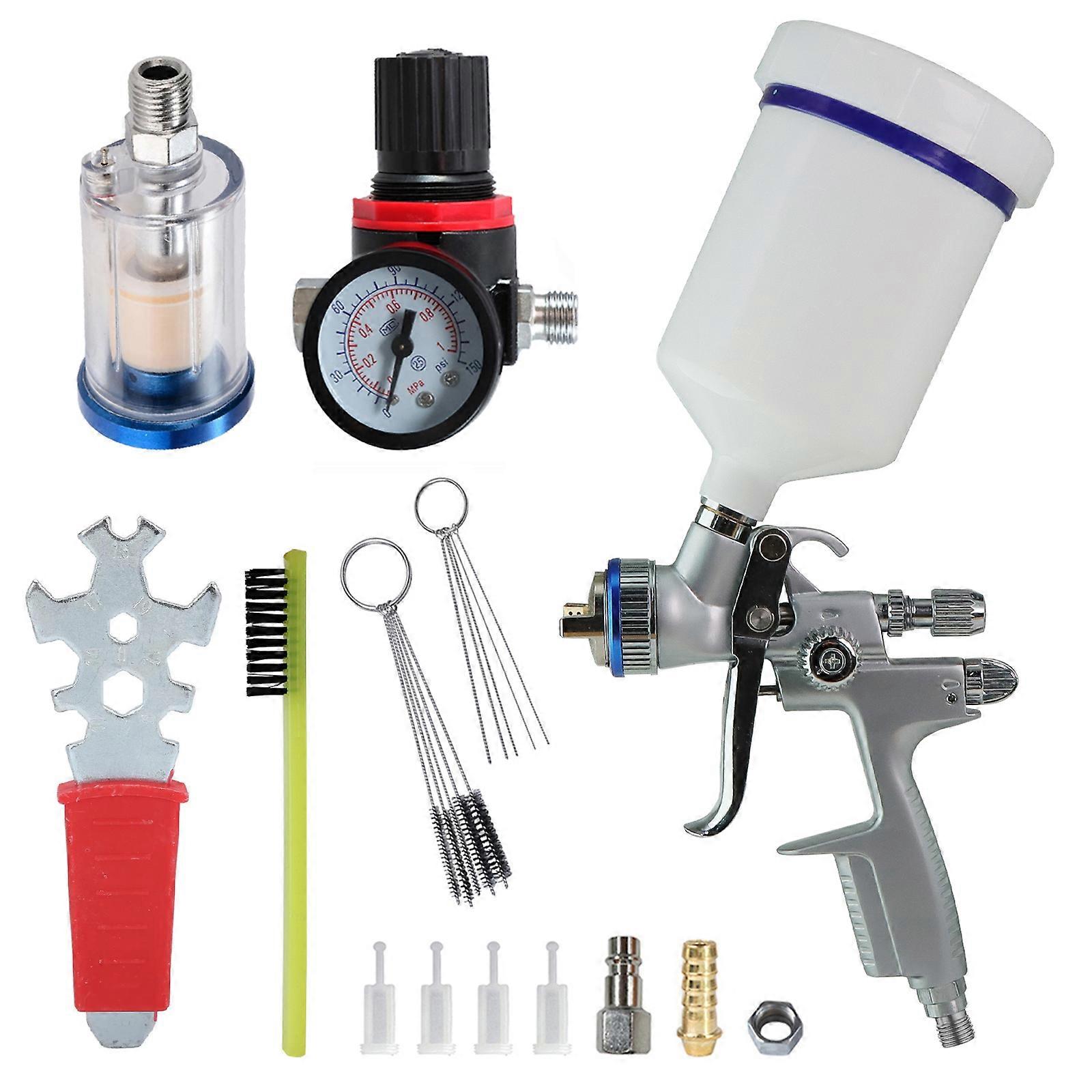 [DETAIL]<br>Specification:<br>Type: HVLP<br>Application: Paint Spray Gun<br>Cup Volume: 600ML<br>Material:  Aluminum, Brass, Stainless Steel<br>Item: High-Performing Spray Gun Gravity Feed Technology 1000B<br>Nozzle Size: 1.3mm<br>Working Pressure: 2.0-3.0bar<br>Air Consumption: about 275L/min<br>Pattern Width: 180-230mm<br>Air Inlet: 1/4"<br><br>[ATTRIBUTES]<br>- Battery Included: No<br>- High-concerned chemical: None<br>- Nozzle Diameter: 1.3mm<br>- Battery Included: No<br>- High-concerned chemical: None<br>- Nozzle Diameter: 1.3mm<br>- Power Type: Pneumatic<br>- Model Number: 1000B<br>- Origin: Mainland China<br>- Feed Type: Gravity<br>- Cup Volume: 600ML<br>- Brand Name: WENXING<br>- Type: HVLP<br>- WENXING Model: 1000B<br>- Use: Home DIY