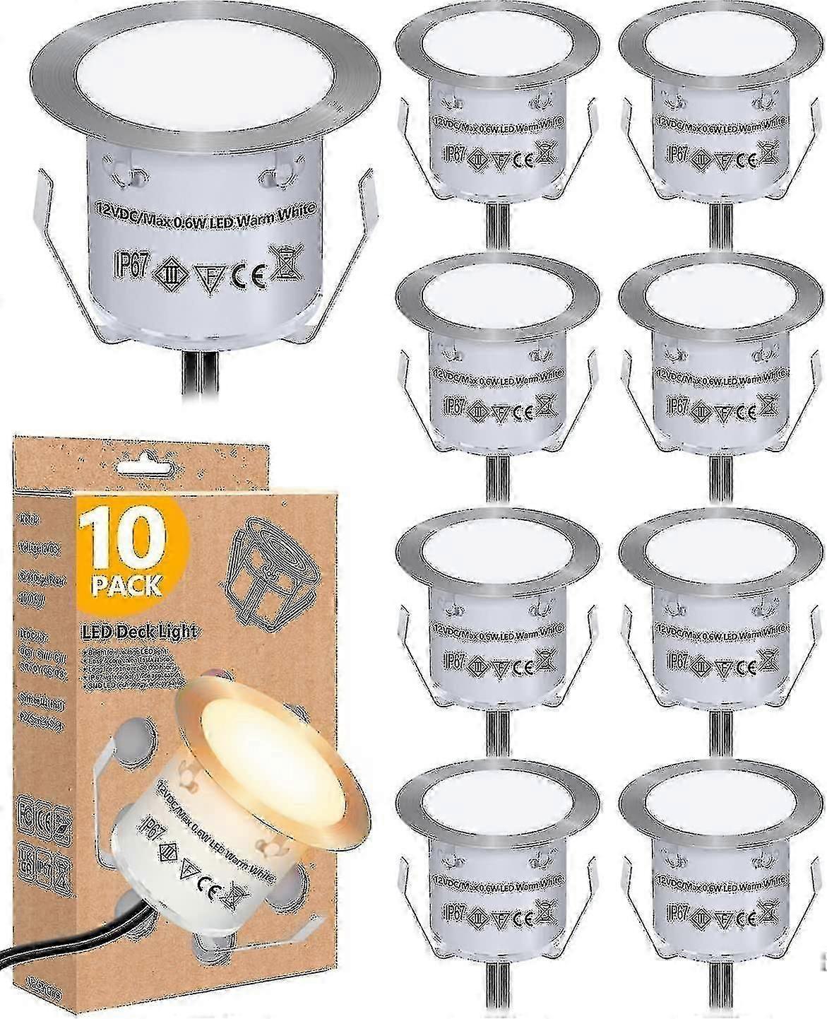 SQLX New Recessed Led Deck Light Kit (pack Of 10), 12v Low Voltage Landscape Lighting, Ip67 Waterproof Outdoor Step Light, Warm White Deck Lighting Fo