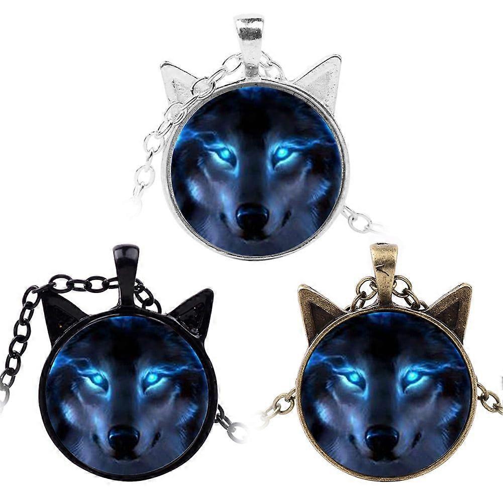 Jewelry Retro Wolf Head Pendant Cabochon Long Chain Sweater Necklace-Bronze