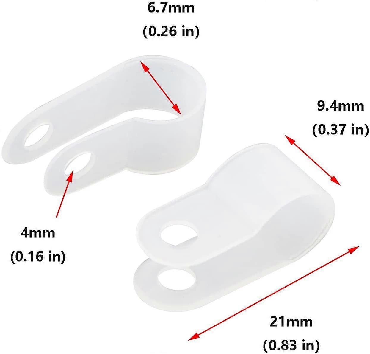 R-type Cable Clamp 1/4 Inch White Nylon Cable Organizer Clips for Wire Management Pack of