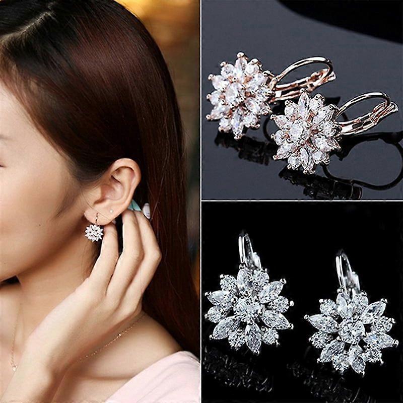 Women\'s Luxury Zircon Stone Flower Pattern Ear Studs Earrings Jewelry Gift