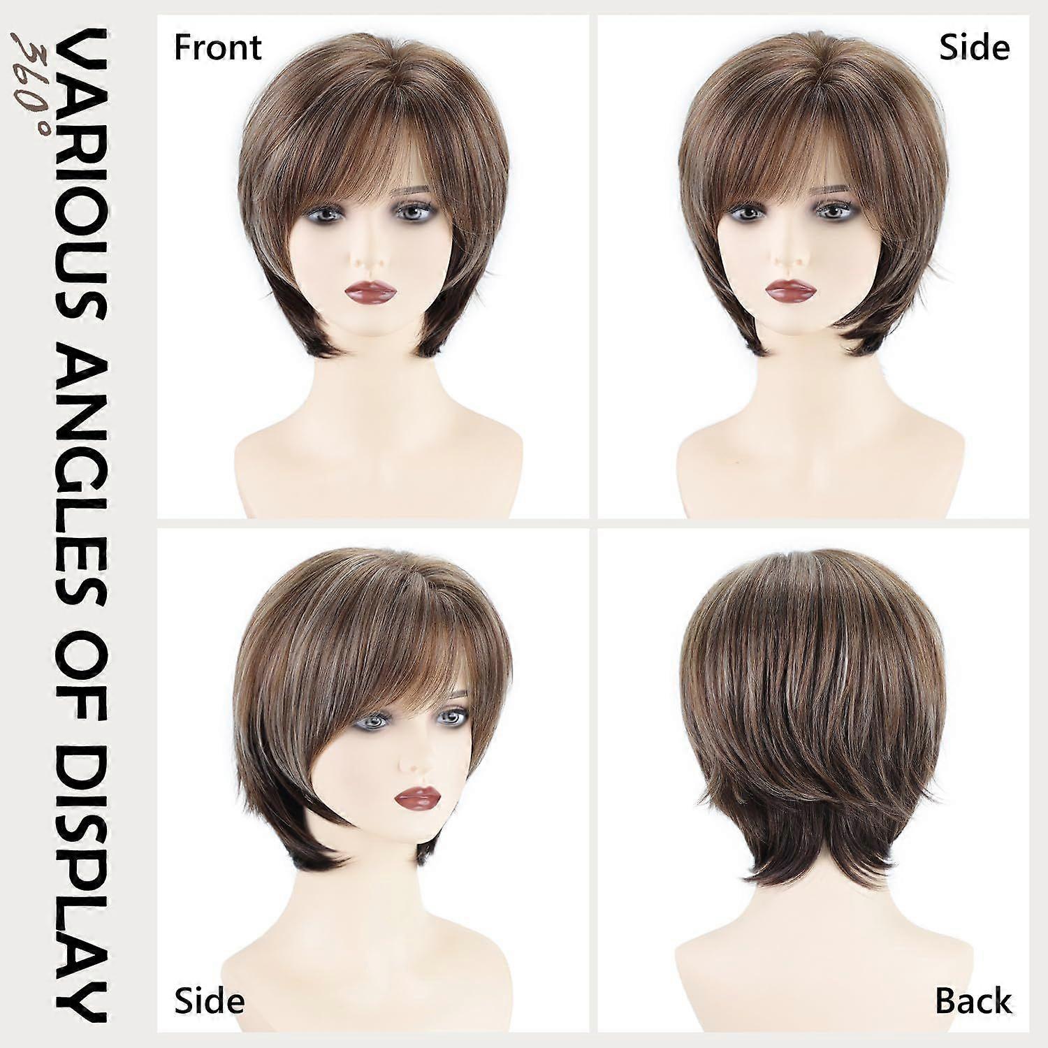 Short Mixed Brown Wigs for White Women Natural Layered Brown Mix Blonde Short