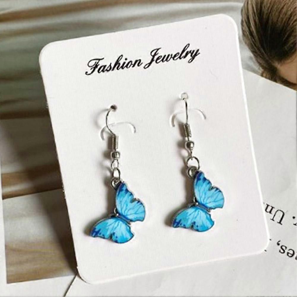 Product Description: 1. Product Name:Butterfly Earrings 2. Product style: Butterfly 3. Product color: Blue 4. Product material: alloy Product features: 1. Made of high quality materials, durable and practical. 2. A quick and easy way to dress up your vacation. 3. Use this item to add festive atmosphere to your holiday party. 4. All our products are made with our warm heart and best wishes. We hope our products can bring a lot of warmth and rest to your life. Your valuable suggestions and comments are welcome. Note: 1. As we all know, different computers display different colors, and the real color may be slightly different from the picture below. 2. Due to manual measurement, the size may be wrong by several centimeters The shipment includes: 1 pair of Earrings