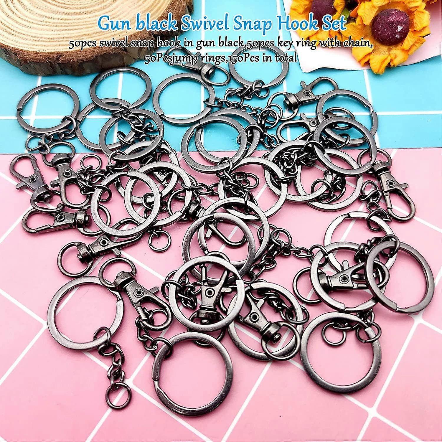 Package Includes:Package comes with 50pcs swivel snap hook in gun black,50pcs key ring with chain and 50Pcsjump rings(The jump ring is ed to the end of the key chain).The bulk key rings kit includes all you need for purse hardware and key chain making supplies.