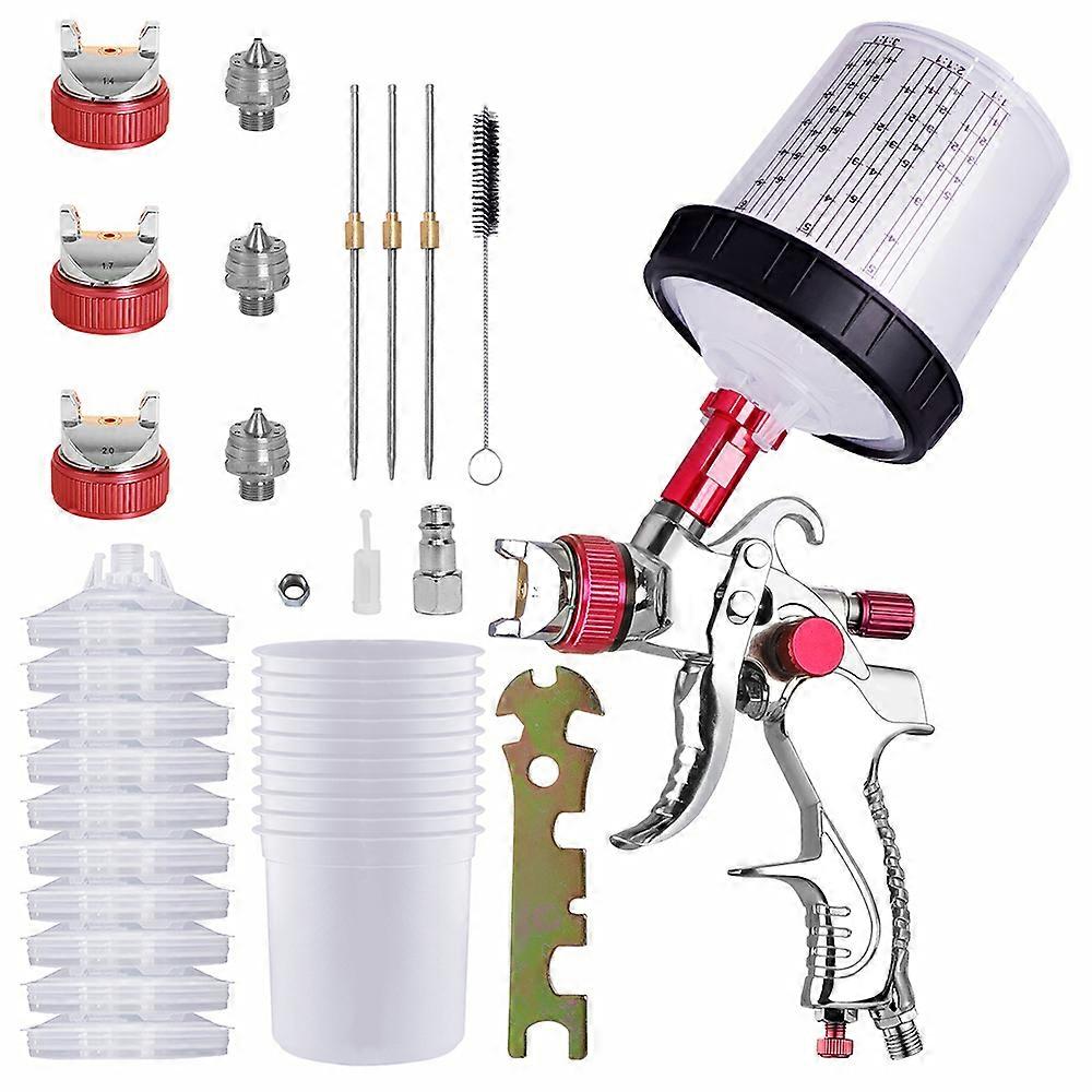 HVLP Spay Gun 1.4/1.7/2.0mm Nozzle Gravity Airbrush For Car Painting Tool 10pcs 600ml No Clean Disposable Measuring Cup