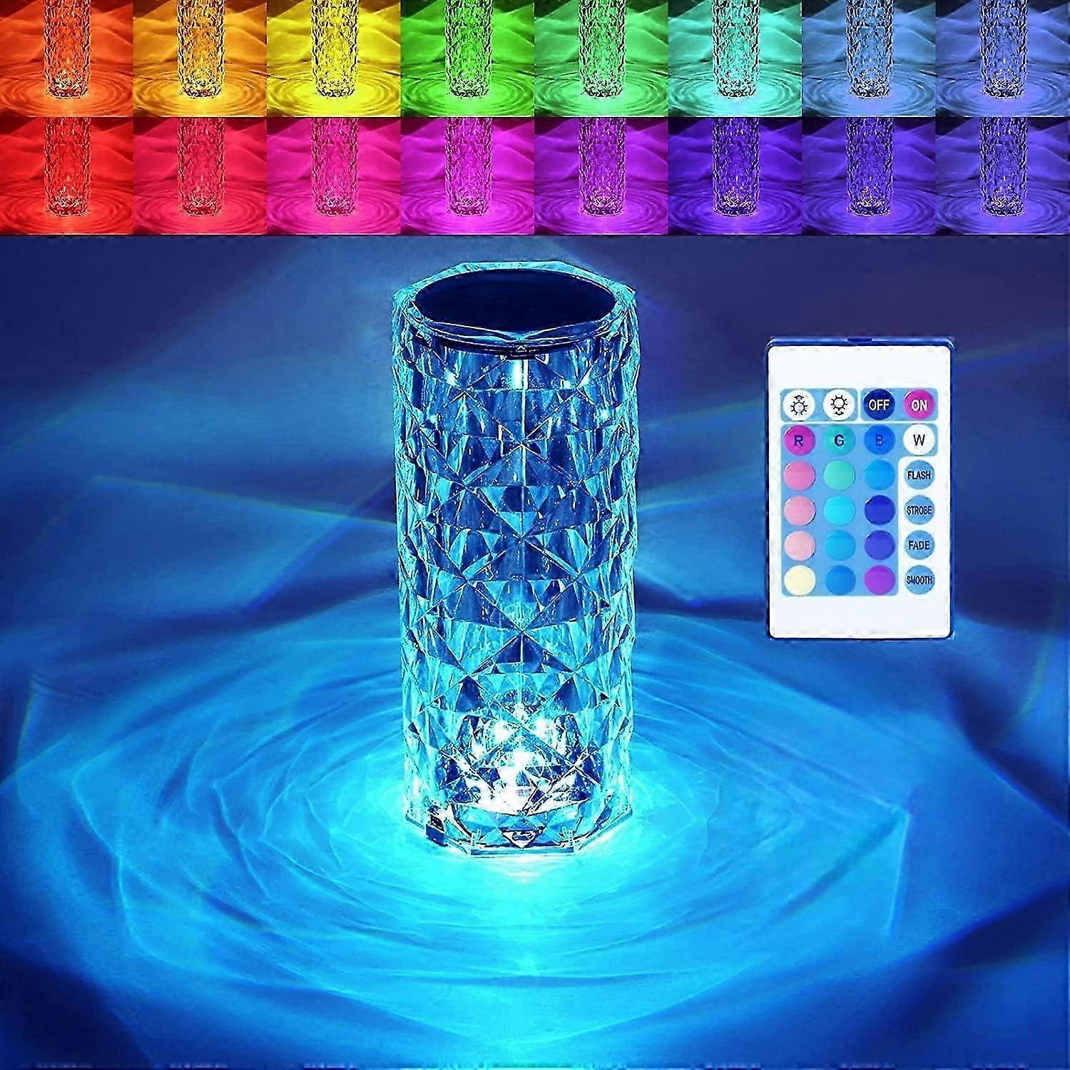 Crystal Table Lamp with RGB 16 Color Changing, LED Rose Wave Touch Lamp with Remote Control, USB Rechargeable Romantic Night Light