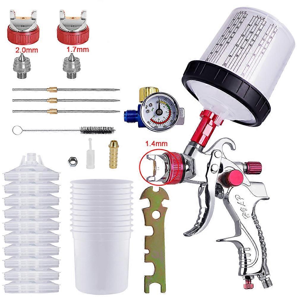 HVLP Spray Gun with Adapter & Mix Tank Car Repair Paint Spray Guns 1.4/1.7/2.0mm Nozzle for Painting Water Based Air Spray Gun