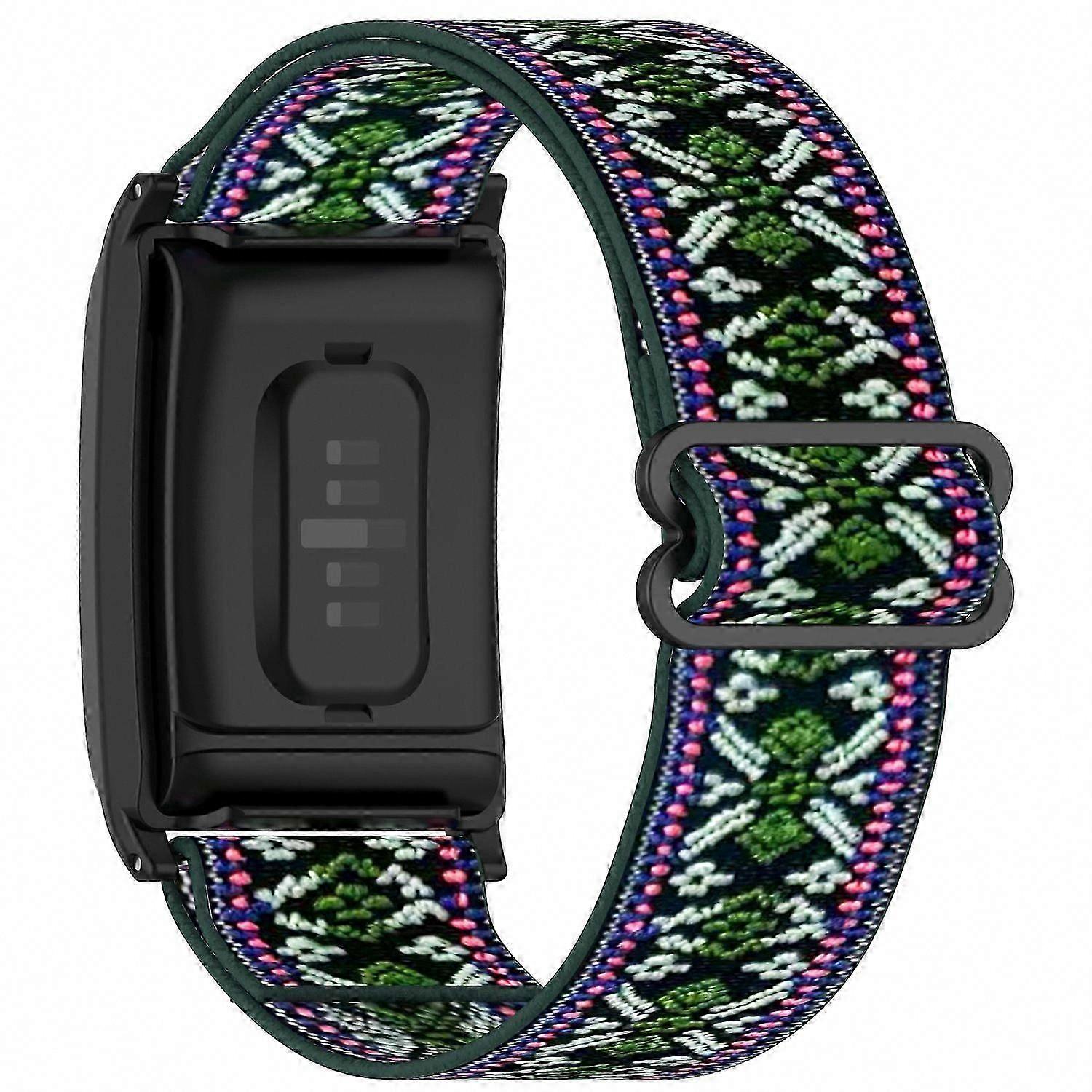 Elastic Woven Nylon Watch Strap - Breathable Replacement Sport Wristband | Stretchable Fabric, Adjustable Buckle, Patterned Green, Multi-Fit