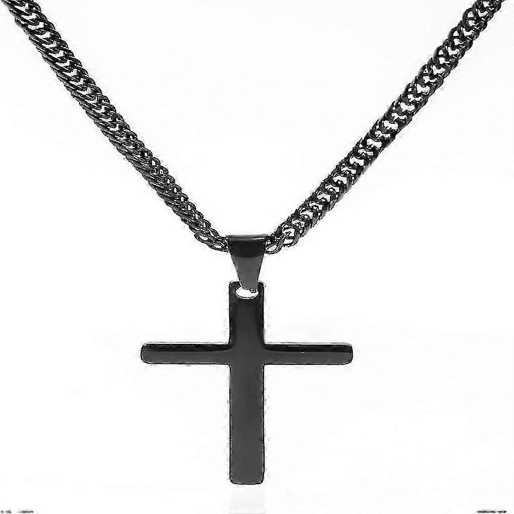 Stainless Steel Plain Cross Necklace Men in Silver or Gold, 16-Inch Chain, 1.57-Inch Pendant
