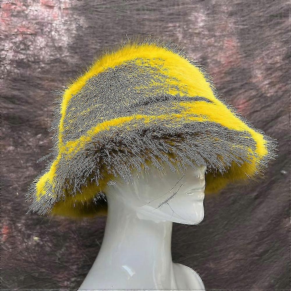 Fluffy Faux Fox Fur Bucket Hat Women Winter Warm Fisherman Hat CY 00645038