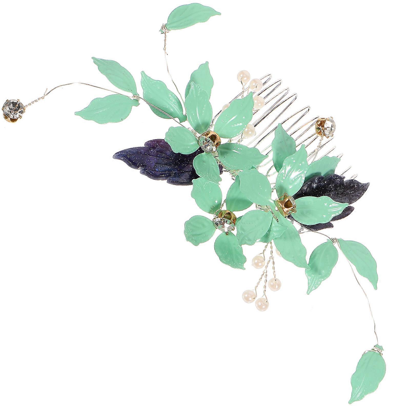Green Wedding Hair Comb Pearl Leaf Design for Bridal Metal Material